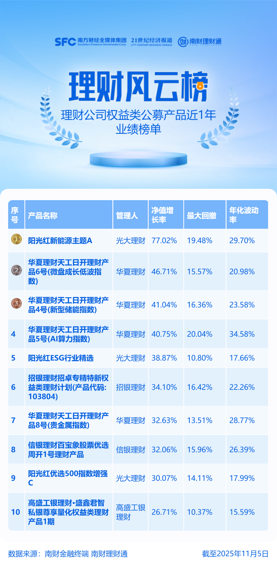 产品计算规模为理财公司权益类理财公募产品,计算截止日期为2025年11月5日,计算区间为近1年。